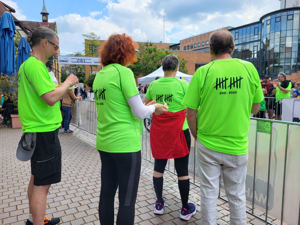 Karin Watzal, Renate Endrulat, Jens Endrulat und Michael Hauf traten im Jahr unseres 10-jährigen Vereinsjubiläums standesgemäß mit unseren neu kreierten Jubiläums-Shirts an.