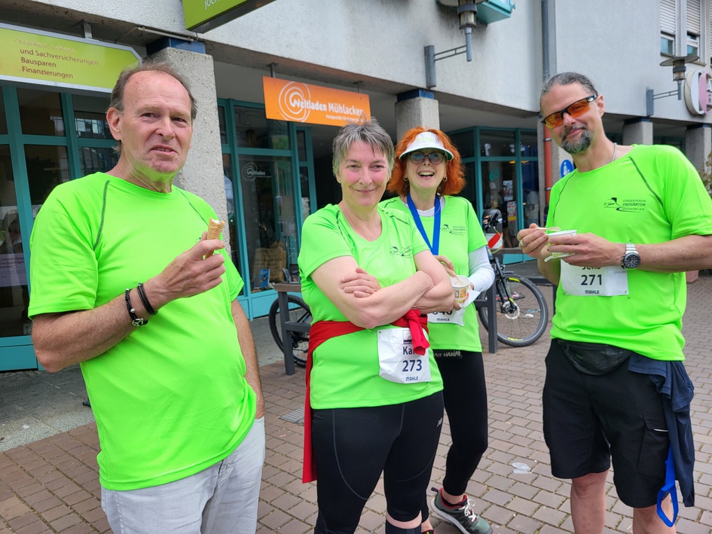 strahlendem Sonnenschein. Viele weitere Mitglieder des Fördervereins Enzgärten Mühlacker e.V. besetzten ebenfalls Positionen an der Laufstrecke, um ihre jeweiligen Teams und Freunde anzufeuern.