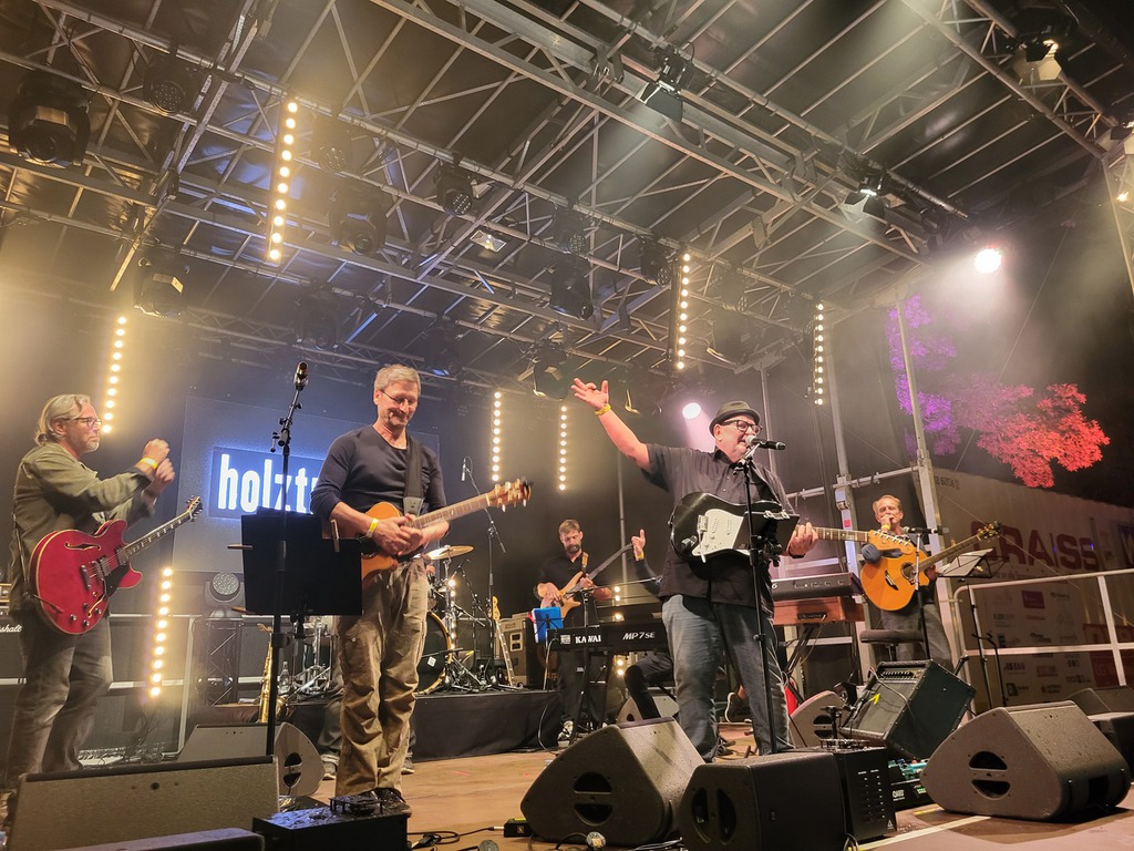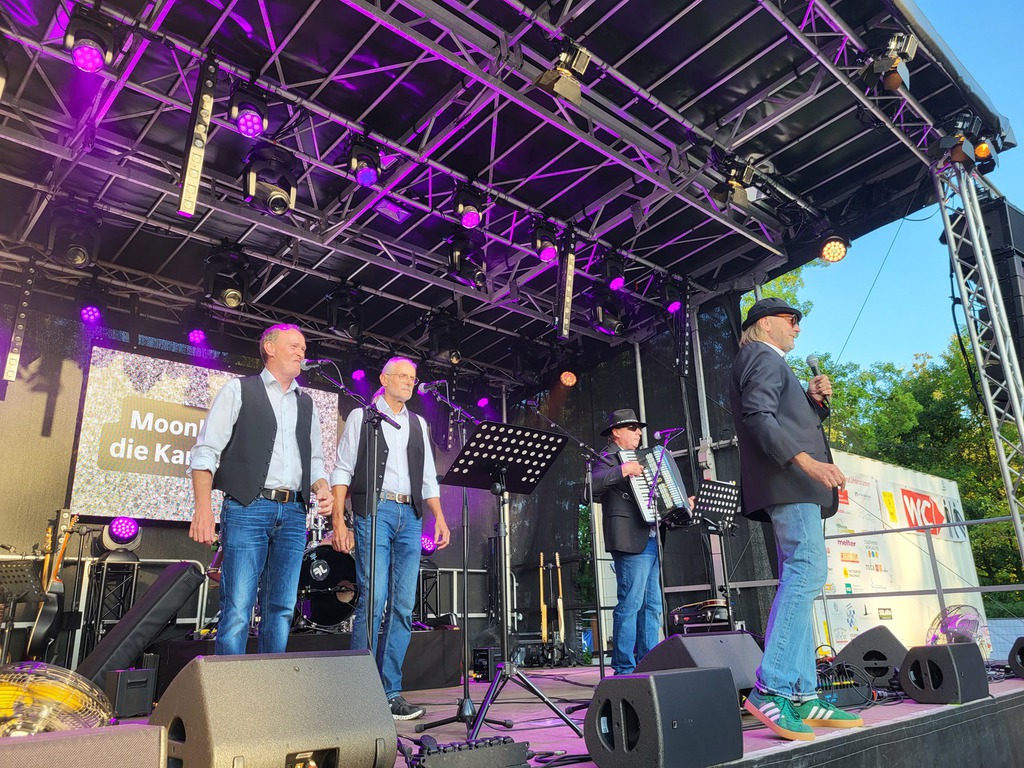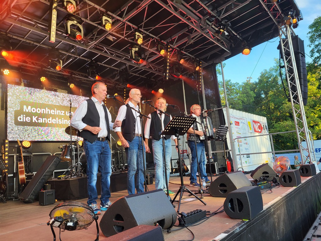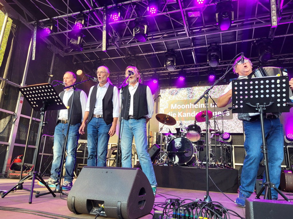 Im Anschluss heizten Moon Heinz & die Kandelsingers das Publikum heftig ein, die zu ihrem 45. Jubiläum hiermit bereits zum zweiten Mal auf der Bühne standen! Die Formation setzt sich zusammen aus Harald Schick (Quetschkommode) und den Vocals: Rolf Watzal, Hardy Herrigel und Volker Schwörer, die endlich wieder gemeinsam auf der Bühne standen und dabei sichtlich Spaß hatten.