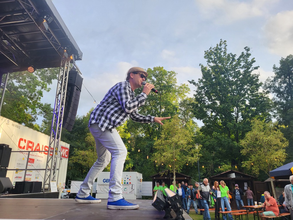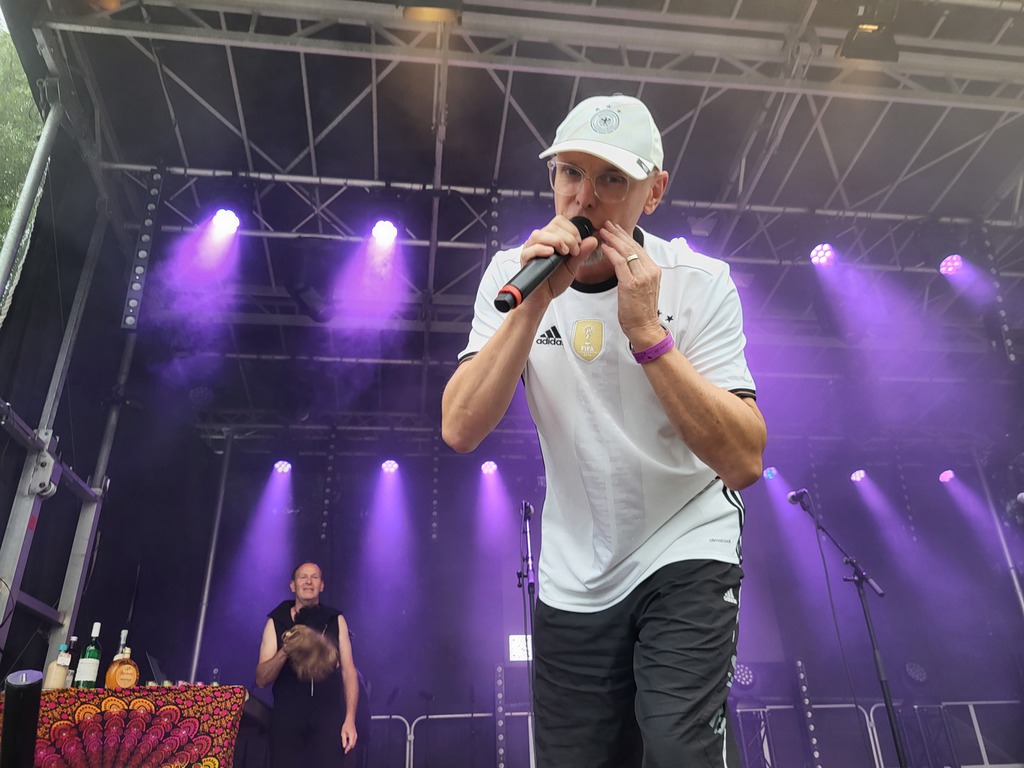 Volle „Hütte“ beim Konzert mit über 1.000 Besucher. Der Schwoissfuass- und Grachmusikoff-Sänger Alex Köberlein hat mit seiner Band nur eine Mission: Welthits wieder ins schwäbische Original zu übersetzen. Die meisten großen Hits der Popgeschichte sind geklaut – und genau dies erzählt Alex in beeindruckender Form bei den SommerevENZ an der Stillen Enz. Der Abend war ein einzigartiger Streifzug durch die Rockgeschichte und die Songs von den Stones, Jethro Tull, Billy Idol und anderen wurden mit sehr viel Humor aufs Korn genommen.