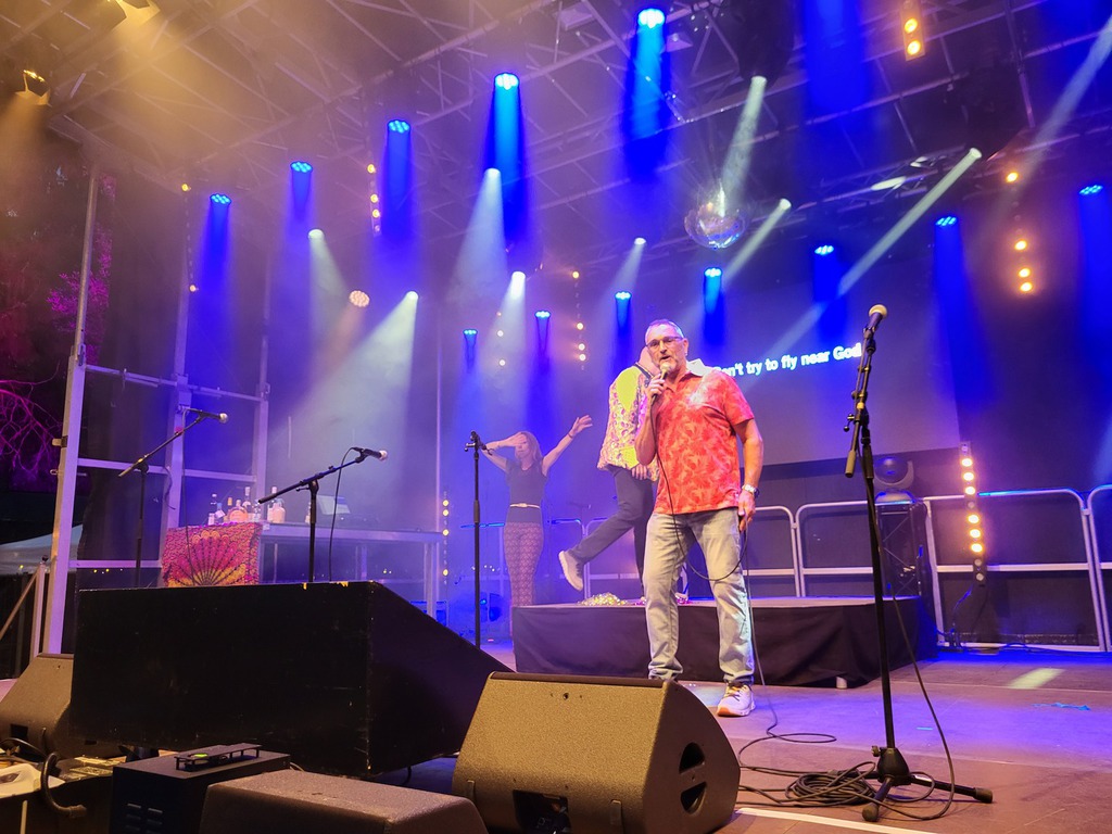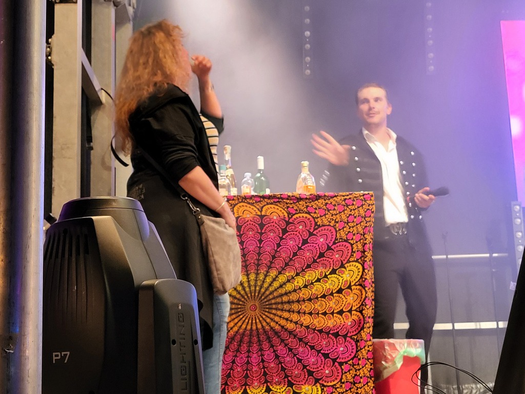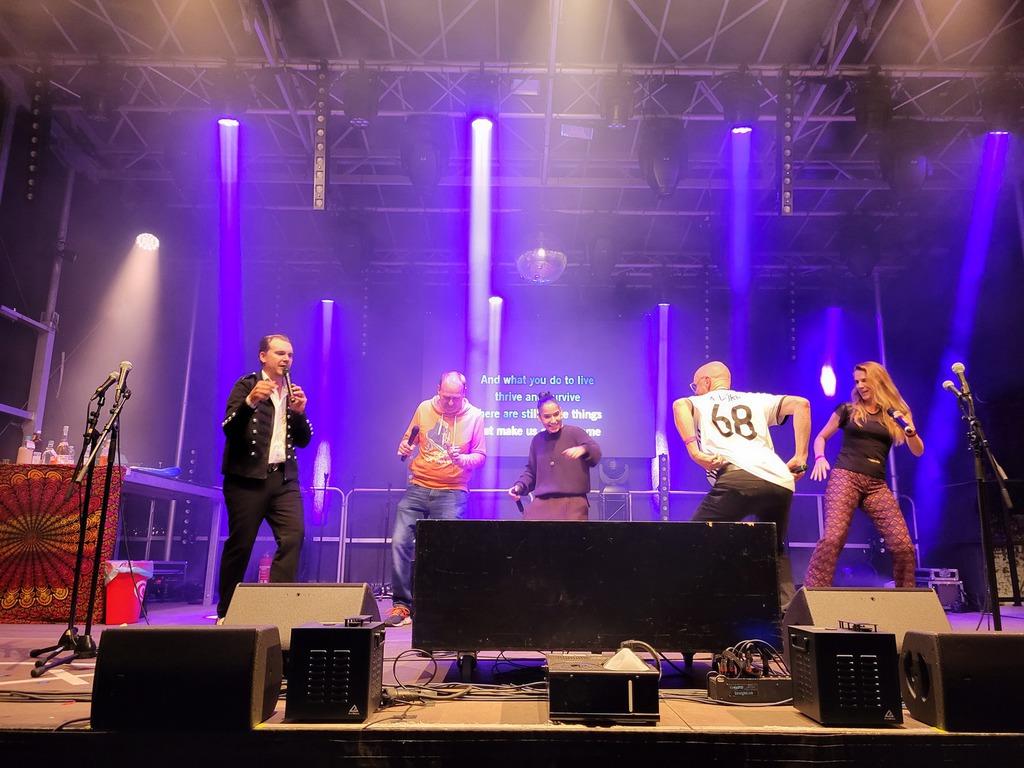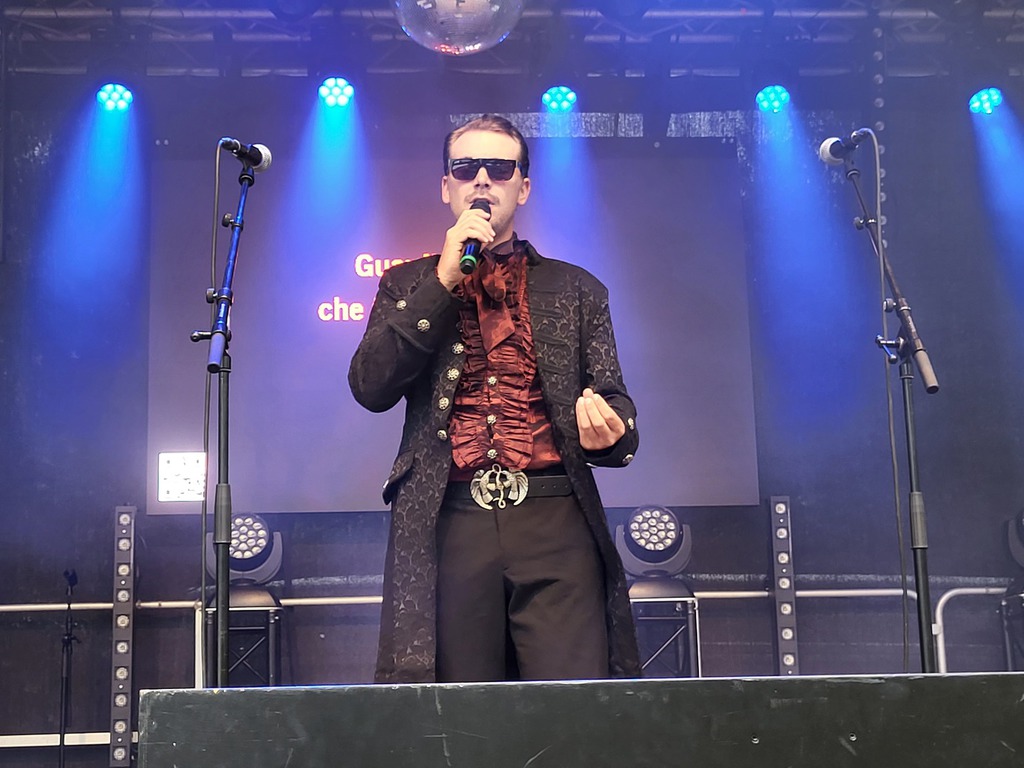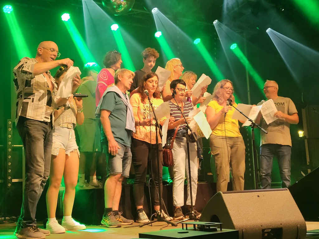 Rolf Watzal und Achim Dürr moderierten diesen Abend souverän und mit viel Witz. Unterstützt wurden sie von stimmgewaltigen Künstlern aus der Region, als da wären: Peli, Matze Gutstein und Anny Maleyes. Zur Eröffnung des Abends machten diese Stars gleich mal ordentlich Stimmung mit den ersten Cover- und Karaoke-Songs bis sich die ersten Schlangen vor der Bühne bildeten mit wagemutigen Besuchern, die sich ans Mikrofon trauten. Auf Wunsch und bei Bedarf wurden sie von den Künstlern gesanglich dezent unterstützt.