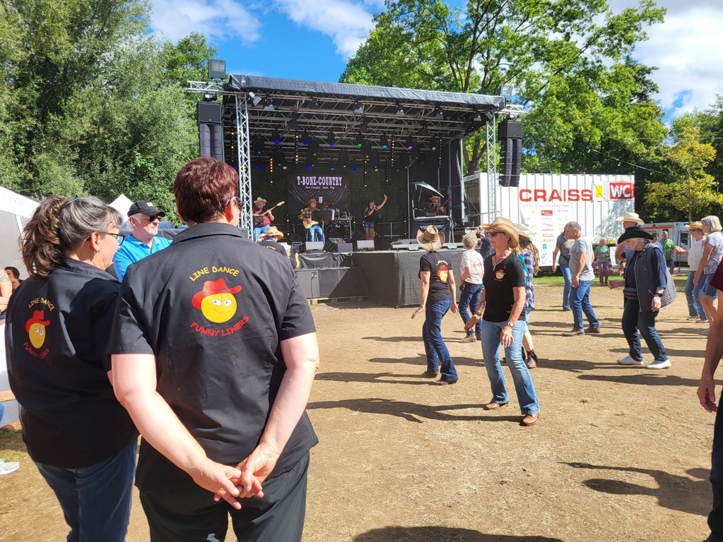 Wie gewohnt luden wir am letzten Sonntag der SommerevENZ zu unsem Country-Tag ein. Begleitet von unseren Freunden von Gym and Dance mit ihrer Line-Dance-Gruppe, war bei sonnigem Wetter und angenehmen Temperaturen die Tanzfläche vor der Bühne immer voll besetzt. Eigens zu diesem Event hat eine auswärtige Line-Dance-Gruppe ihren Vereinsausflug auf diesen Sonntag gelegt und kam mit einem Bus nach Mühlacker angereist.